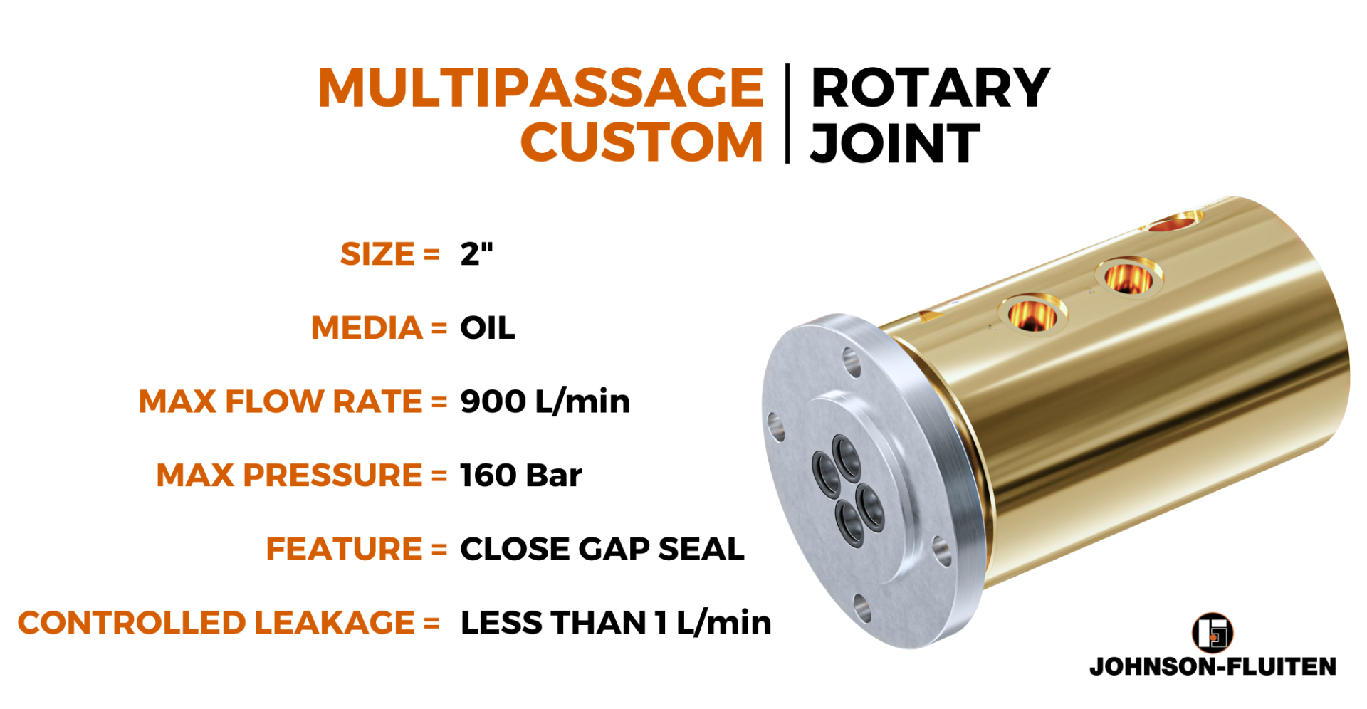 - Sopportare una portata straordinaria richiesta di 900 litri al minuto (quasi cinque volte superiore rispetto a un normale giunto rotante a 2 passaggi.)