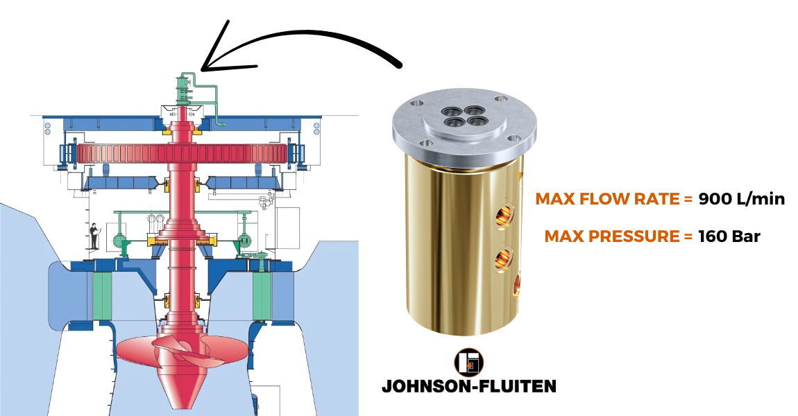Perché una turbina Kaplan funzioni al massimo delle sue potenzialità, le pale devono poter cambiare inclinazione. Questa regolazione è affidata a cilindri idraulici, che a loro volta necessitano di una connessione continua e sicura tra la parte fissa e quella in rotazione della turbina.